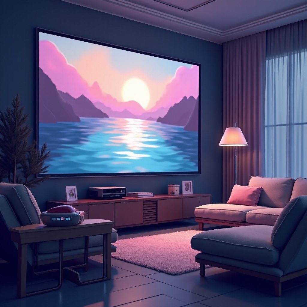 Докато идеалният размер на стаята може да варира, осигуряването на разстояние от около 8-12 фута между екрана и зоната за сядане може да оптимизира гледането.